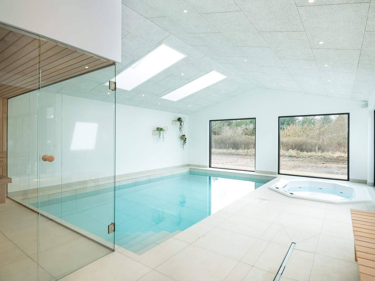 In Nr. Lyngby finden Sie dieses Ferienhaus aus dem Jahr 2021, das viel Luxus und Komfort bietet. Hier wurde viel Wert auf Details gelegt. Unter anderem gibt es einen schönen Innenpool mit Glastüren zum Esszimmer, sodass Sie entspannt am Tisch sitzen können, während die Kinder im Pool planschen. Der Wellnessraum verfügt außerdem über einen eingelassenen Whirlpool und eine Sauna. Im Außenbereich gibt es einen Whirlpool, der das ganze Jahr über genutzt werden kann. Das Haus verfügt über zehn Schlafzimmer mit Doppelbetten und ein Zimmer mit einem Doppelbett und einem Etagenbett für zwei Personen. Darüber hinaus gibt es vier Lofts mit insgesamt vier Schlafplätzen, fünf Badezimmer, von denen eines mit dem Wellnessbereich verbunden ist, und vier im Schlafbereich. Das Haus ist fast vollständig von Terrassen umgeben und von fast allen Schlafzimmern aus haben Sie direkten Zugang zu den Terrassen. Eine Terrasse kann das ganze Jahr über genutzt werden. So ist immer Schutz und Sonne oder Schatten vorhanden. Es gibt einen schönen Aktivitätsraum mit Billard, Darts und einer Spielkonsole (PlayStation). Das Haus verfügt über modernste Energiequellen wie Wärmepumpen und Wärmerückgewinnung und ist mit Fußbodenheizung in allen Räumen ausgestattet. Das Haus liegt auf einem 3.040 m² großen Grundstück mit u. a. Fußballtor, Sandkasten und Schaukeln – für viel Entspannung, Spiel und gemeinsames Beisammensein. Für die kleinen Gäste stehen zwei Kinderbetten und zwei Hochstühle zur Verfügung. Eine Ladestation für Elektroautos ist vorhanden. Die Vermietung an Jugendgruppen ist nicht möglich.