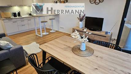 - komplett ausgestattete Küche mit Cerankochfeld, Geschirrspüler und Mikrowelle