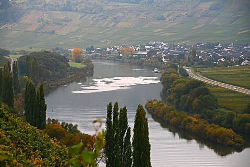 Unser Weinort Leiwen schmiegt sich an eine der schönsten Moselschleifen. In nur wenigen Autominuten erreichen Sie die historischen Städte Trier, Bernkastel u. Luxemburg. Herrliche Wanderwege laden zum Erkunden der näheren Umgebung ein, Radfahrer finden ein perfekt ausgebautes Radwegnetz entlang der Mosel und ihren Nebenflüssen Saar, Ruwer und Lieser. Unser schönes Panorama-Erlebnisbad direkt über der Moselschleife verspricht perfekten Badespass für Jung und Alt!